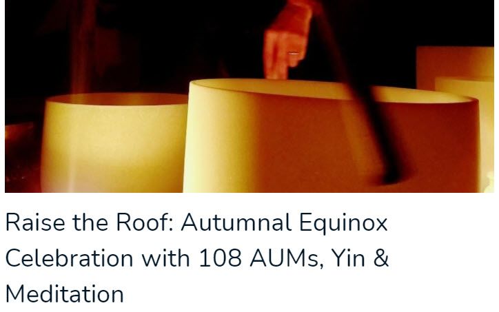 It is an opportunity to practice gratitude and get quiet during a magical moment. Then join me and my husband Steve on Zoom this Sunday, September 26th at 6pm for "Raise the Roof: Autumnal Equinox Celebration with 108 AUMs, Yin & Meditation." We will raise our vibration with passive yin practice. breathwork, mudras and chant 108 Aums. Set your intentions for the season!