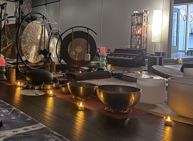 Yoga Nidra meditation guides the practitioner into a hypnagogic state, the state of consciousness between wakefulness and sleeping. It is in this deeply relaxed state where the practitioner plants seeds of intention. Yoga Nidra meditation uses breathwork, relaxation techniques, rapid imagery, creative visualization, and sacred sound to help yogins explore their potential, their hopes and their dreams for positive transformation. Kristin's Yoga Nidra Meditation is enhanced with sound healing and ends with a sound bath  of antique Tibetan bowls, airy chimes, Crystal bowls and Pyramids, flowing percussive rhythm, traditional harmonium, and the deep tonal vibrations of a Gong to balance all of the chakras and elements of the body. Sign up here